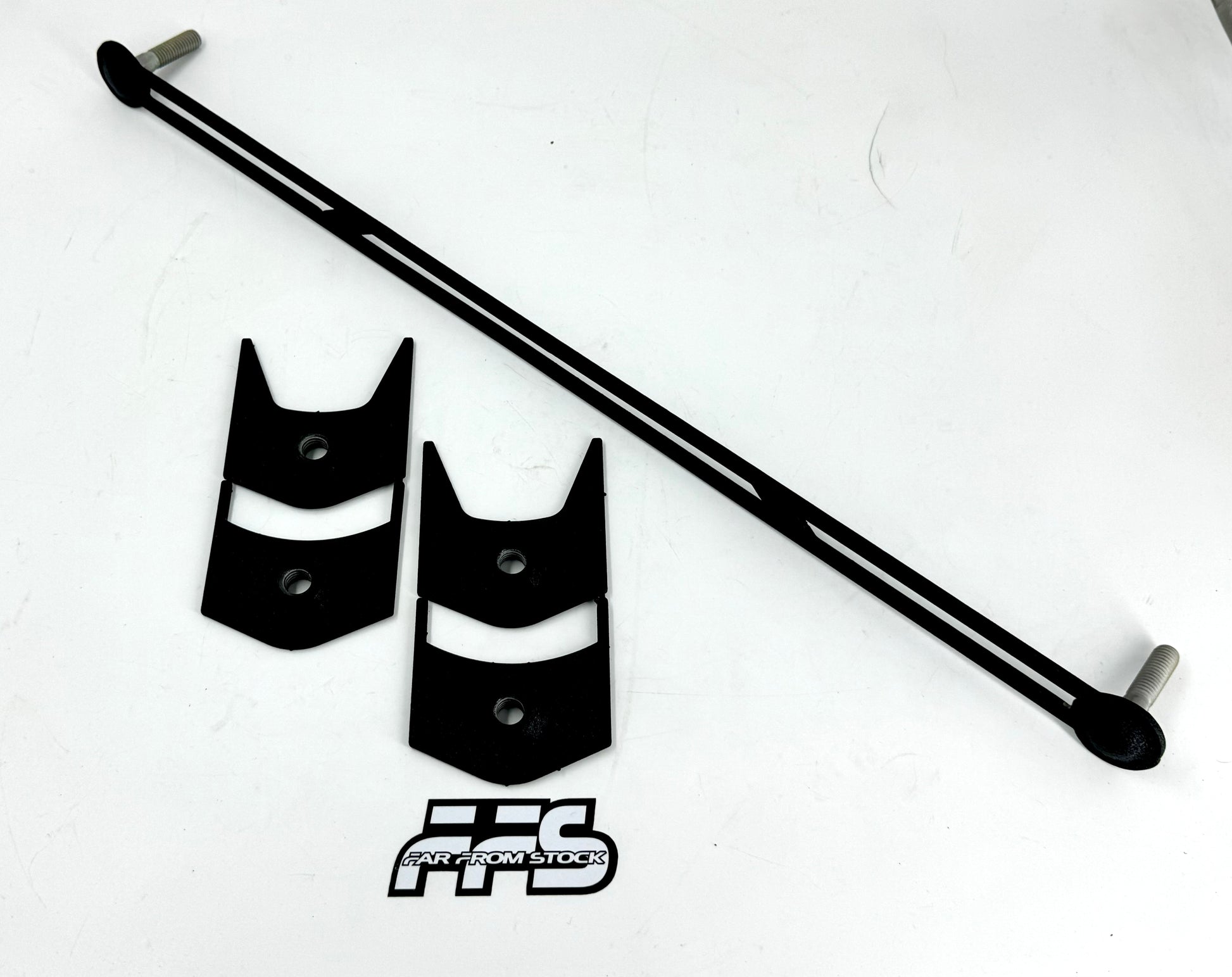 (2) So our custom mounting hardware kits are the next upgrade, good photos with description as well as missing spacers, washers, nuts and bolts you would need for a complete installation with new parts.